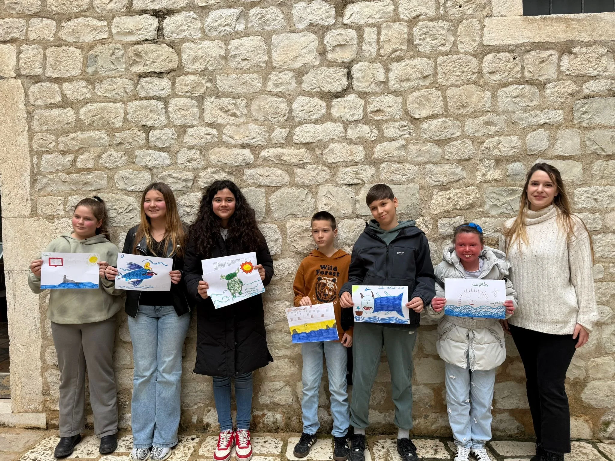 The workshop took place on Thursday, February 12, as part of the TRACE.hr project, which connects children with local cultural heritage and encourages critical thinking through forgotten local stories. The children read an old legend about the “monster of Kaštela Bay,” inspired by the writings of the 15th-century traveler Pero Tafur, who recorded that the washerwomen of Kaštela had seen a “monster shaped like a half-fish from the waist down, and from the waist up human in form, with wings like a bat.”